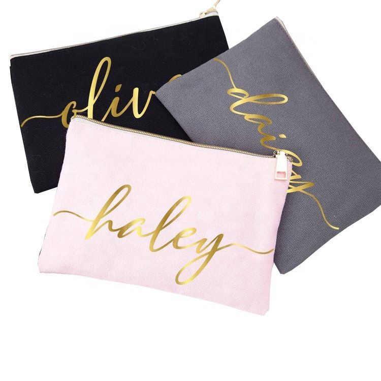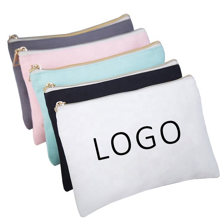 Custom logo cotton canvas cosmetic bags travel makeup organizer pouch cosmetic brush bag promotional pencil bags